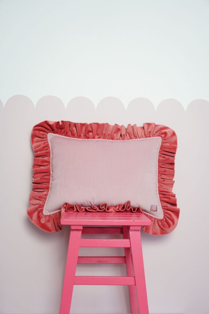 - Velvet Pillow with Frill – Raspberry Smoothie