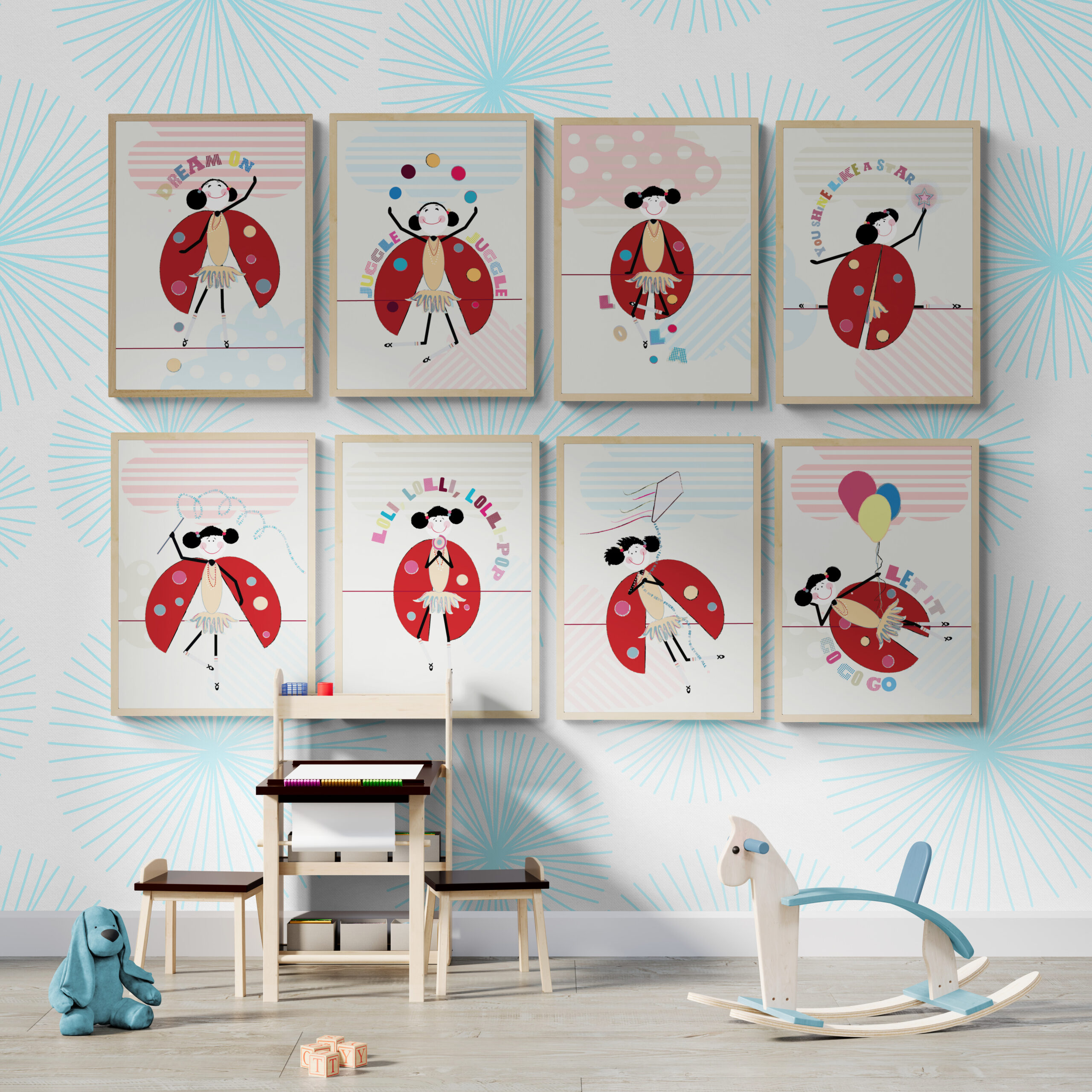 The Ladybird Lola collection of wall art for girls was designed to give girls a companion, someone to relate to, and a spark of adventure to brighten their room with passion and friendship.