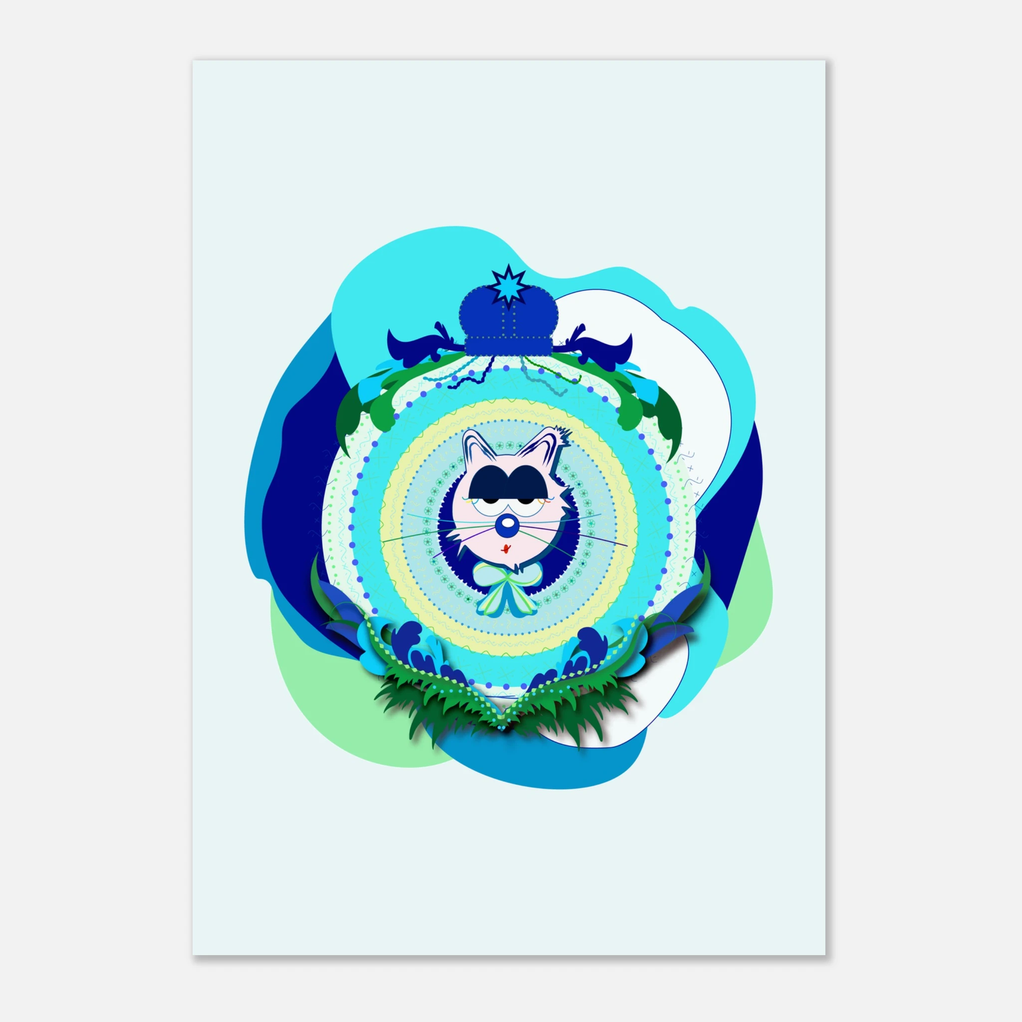 This elegant and protective catprint adds a sense of comfort and security to any child’s space. Whether decorating a nursery, playroom, or reading corner, Blue Supermum Cat radiates calmness and love. The soft blue and aqua tones create a peaceful atmosphere, ideal for bedtime stories and quiet moments.