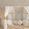 The Boho Bed Canopy is designed to transform any bed into a soft, airy hideaway. Made from delicate, translucent fabric, it’s the perfect addition to a girl’s room, whether it’s a whimsical princess corner or a stylish boho retreat. The intricate, lace-like patterns offer a touch of romance while maintaining a clean, minimalist look that’s perfect for both little ones and teens.