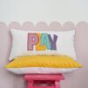 Colorful Play Pillowcase – A joyful cotton pillow cover with “play” embroidery. Made for kids’ rooms, playrooms, or commercial spaces full of energy and imagination.