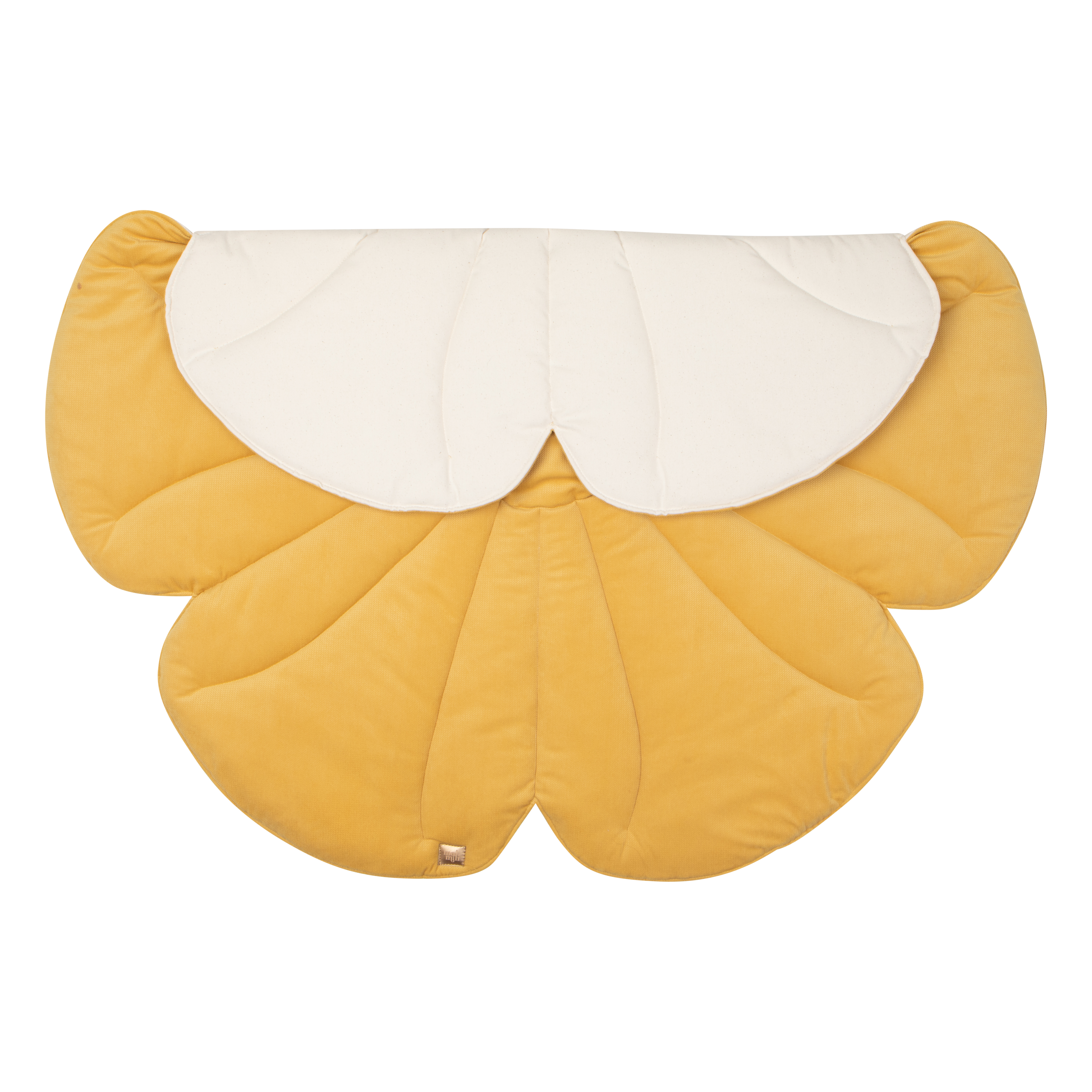 Velvet flower-shaped play mat in yellow. Large, soft, and beautifully made — perfect for nurseries, kids rooms, and stylish toddler play corners.