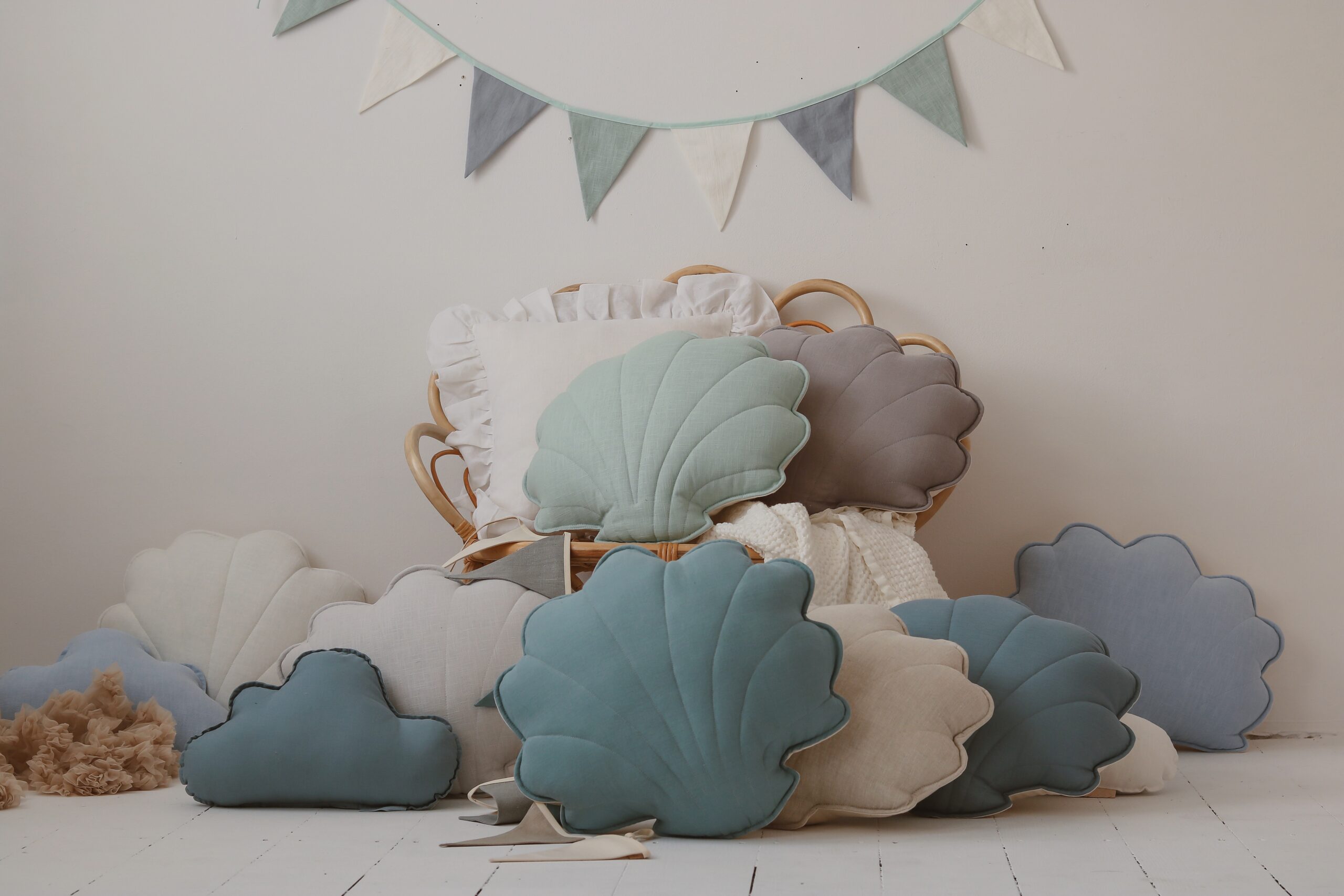 The Linen Shell Pillow – Grey brings natural texture and sculptural softness to any interior. With its seashell-inspired shape and light grey linen fabric, it’s both playful and elegant, making it a unique accent in nurseries, children’s bedrooms, or even grown-up living spaces. Its soft, neutral tone fits beautifully into minimalist, coastal, and Scandinavian-inspired interiors.