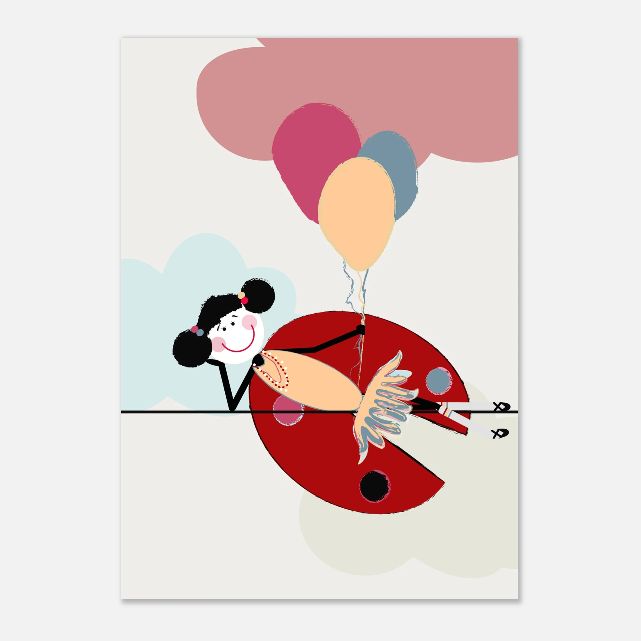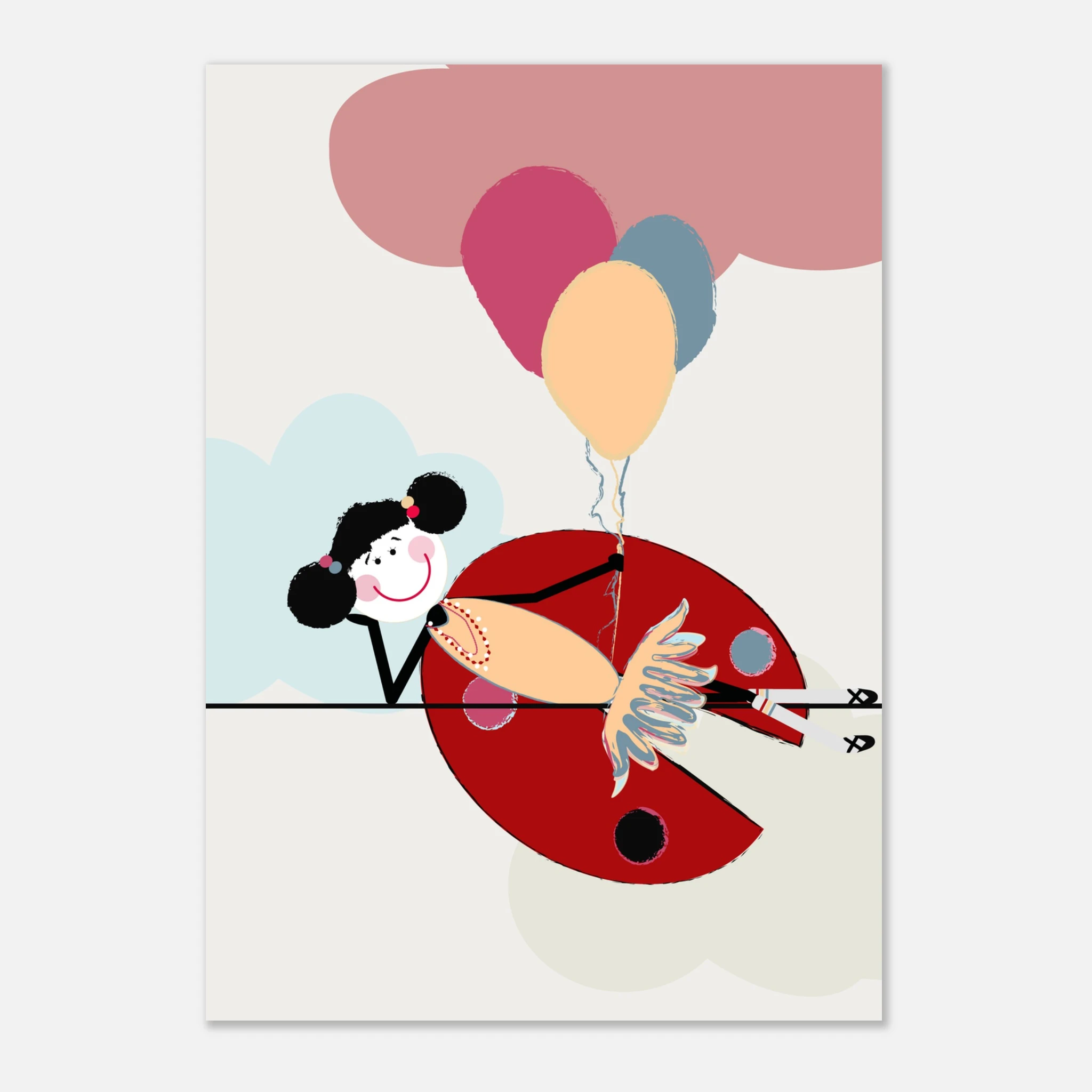 The “Lola and Balloons” poster from The Ladybird Lola Collection is a whimsical addition, dedicated to imaginative young girls. Lola, surrounded by colorful balloons, radiates a sense of joy and celebration. This artwork adds a touch of playfulness and wonder to any girl’s space, creating an atmosphere of cheer and delight.