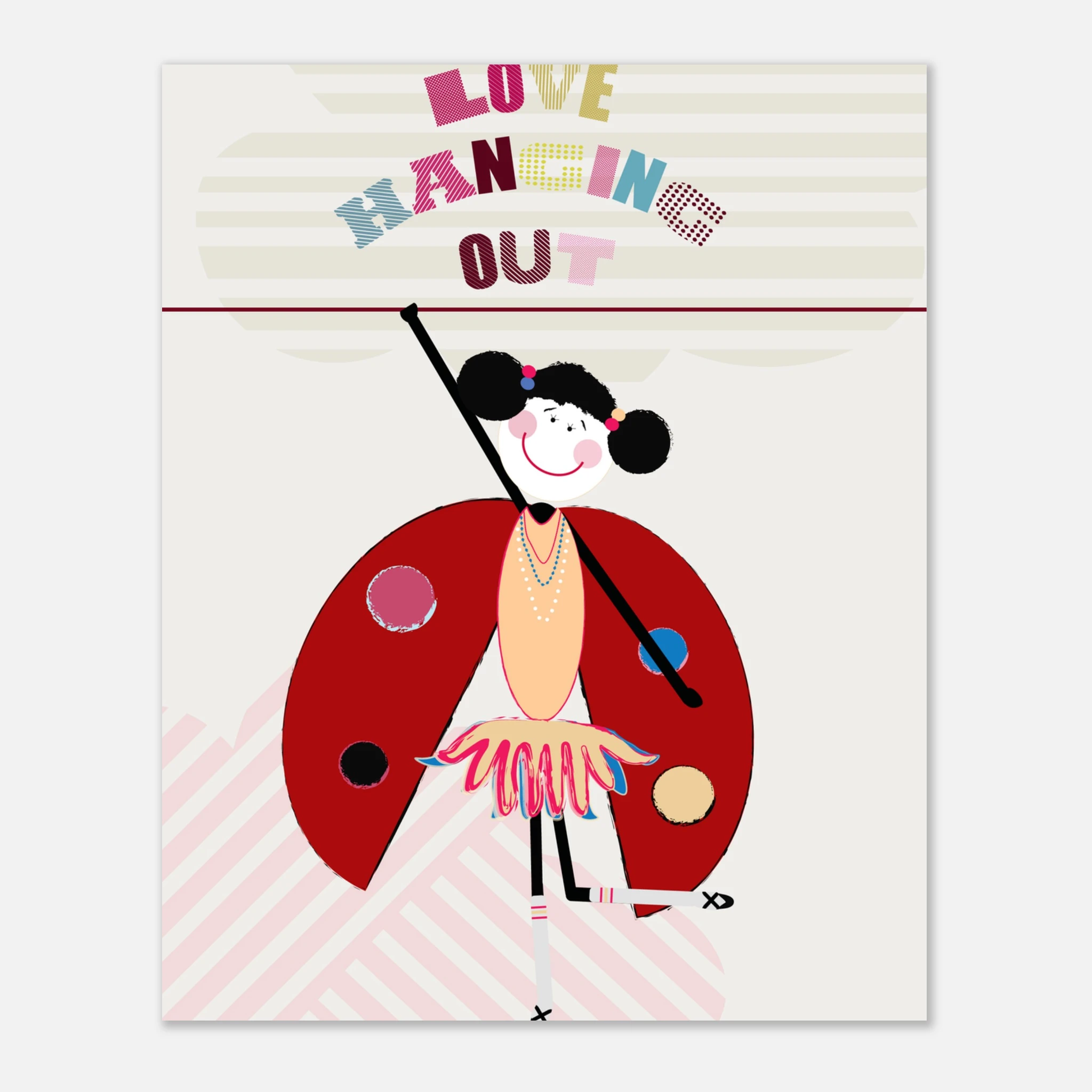 The Lola BFF Love Hanging Out Wall Art is a fun and cheerful kids’ decor piece, perfect for a girl’s bedroom, playroom, or nursery. Printed on high-quality matte paper, it adds a vibrant and friendly touch to any space.
