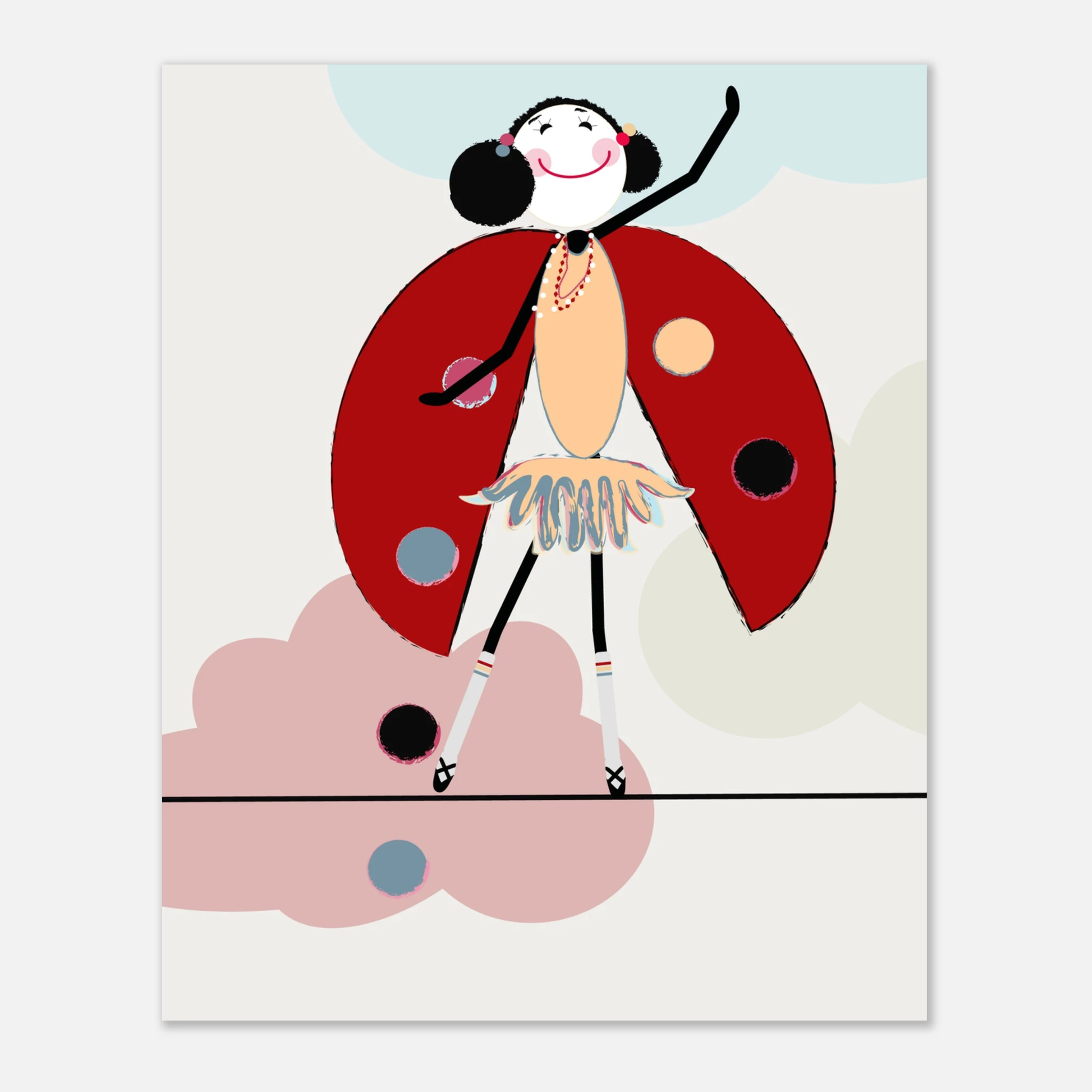 Introduce “Lola Posing” from The Ladybird Lola Collection. This poster is an excellent choice for girls with vivid imaginations, as it adds character and style to their room. Moreover, it offers a unique opportunity to transform their space into a place of creativity and wonder.