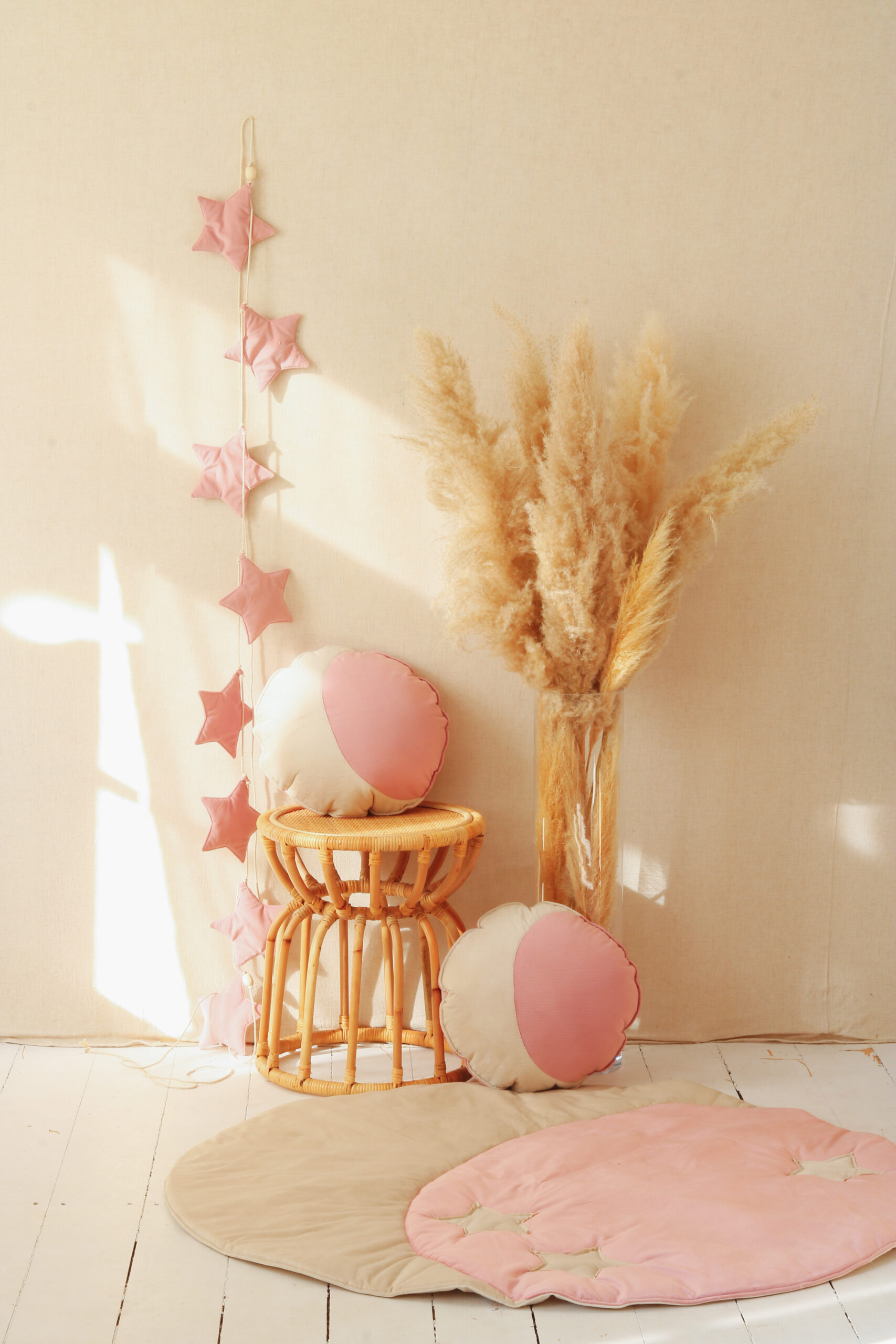 The “Soft Pink Dust” Velvet Garland with Stars is a charming decorative touch that adds warmth, elegance, and gentle whimsy to your child’s space. Designed in delicate blush tones, this garland features soft star shapes in a powdery pink velvet — perfect for creating an inviting, imaginative environment in both nurseries and growing kids’ rooms.